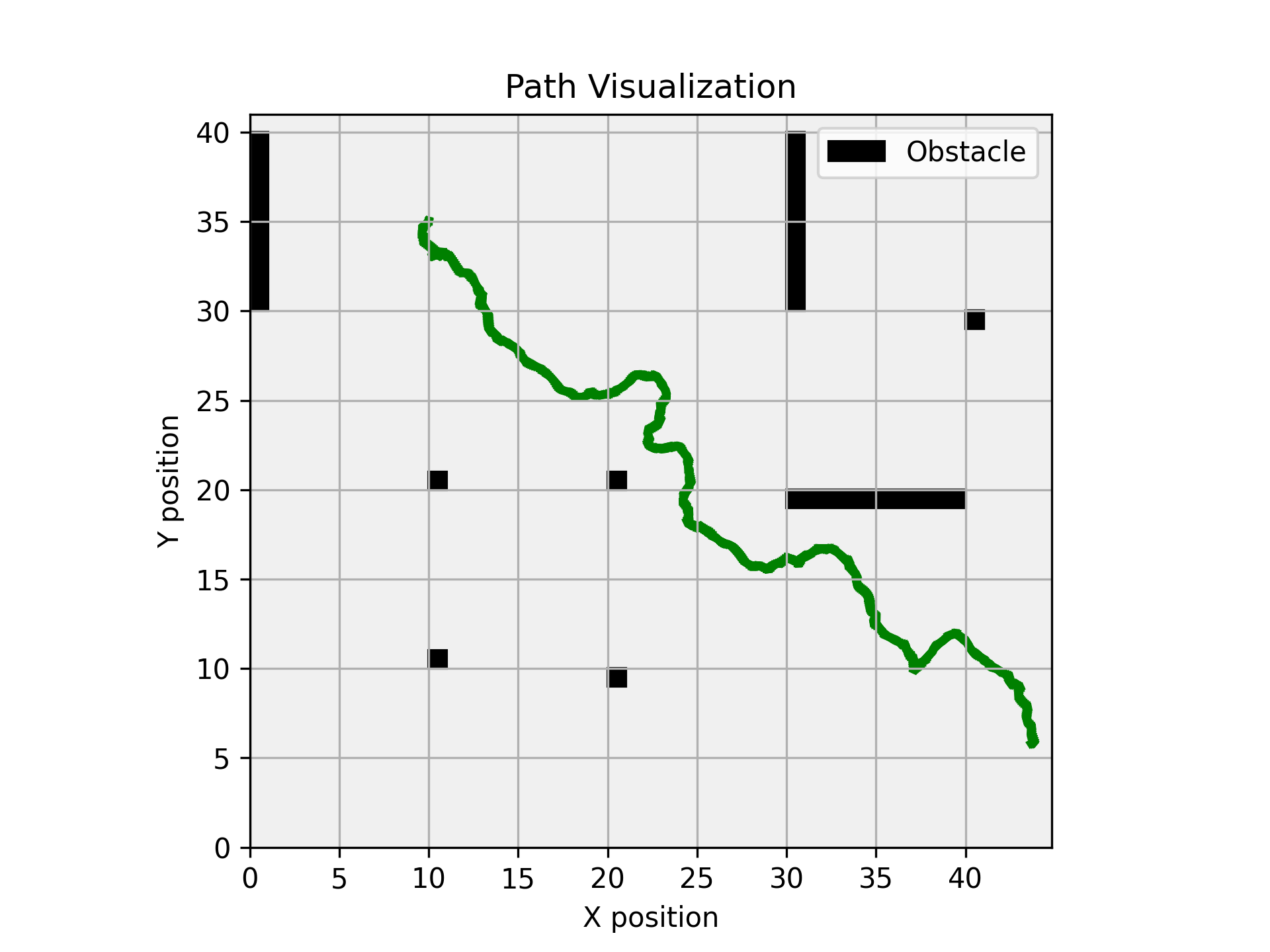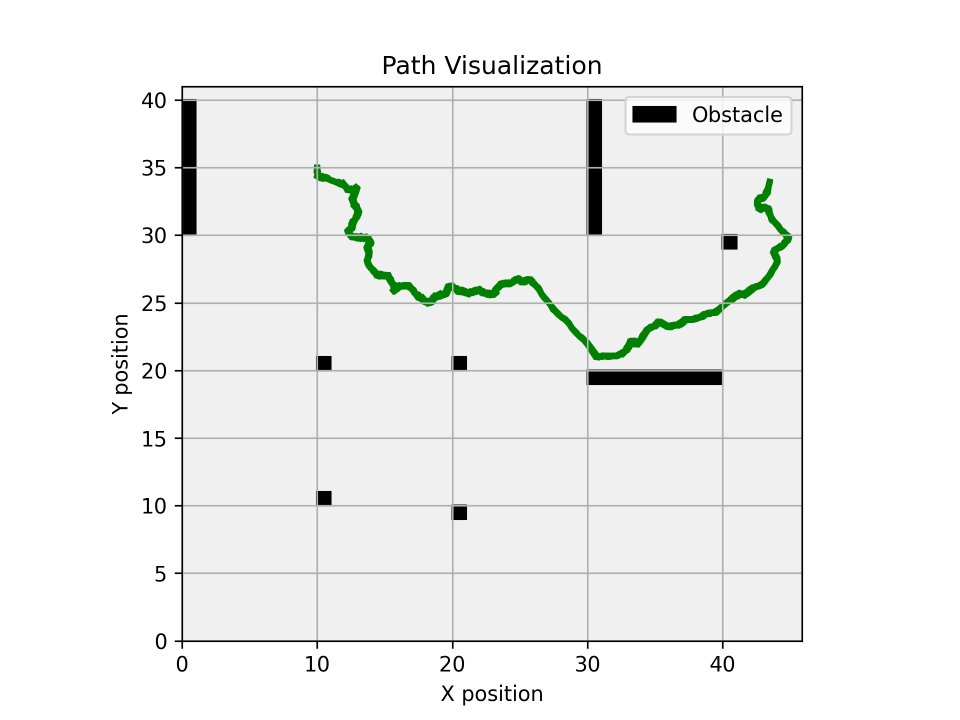 • Accuracy: The planner effectively avoided all obstacles in the environment in its successful run, showcasing its robust collision avoidance capabilities.