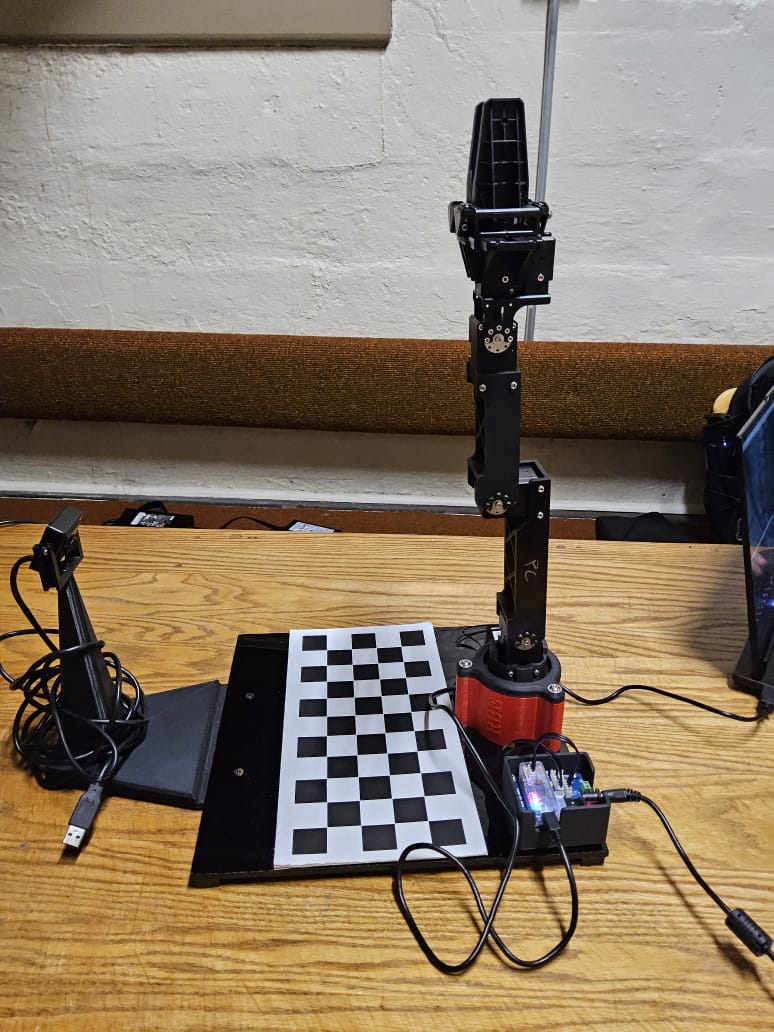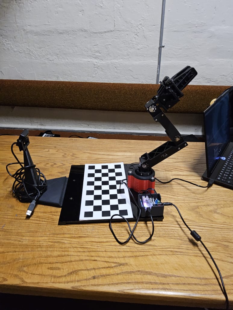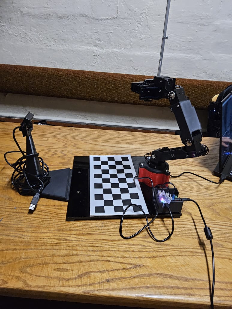 - Place an object at a particular location on the chess board. Calculate the inverse kinematics for that gripper pose to find the point angles. Move the robot to that position, pick the object and lift it.
