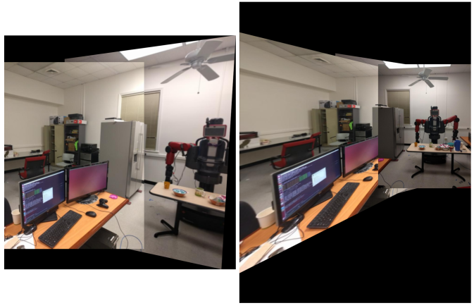Once the homography matrix between the pair of images is obtained, it becomes possible to combine multiple views into a single image, resulting in a seamless panoramic view. However, in this technique, it is quite important to blend the common region between images without affecting the regions that are not common.