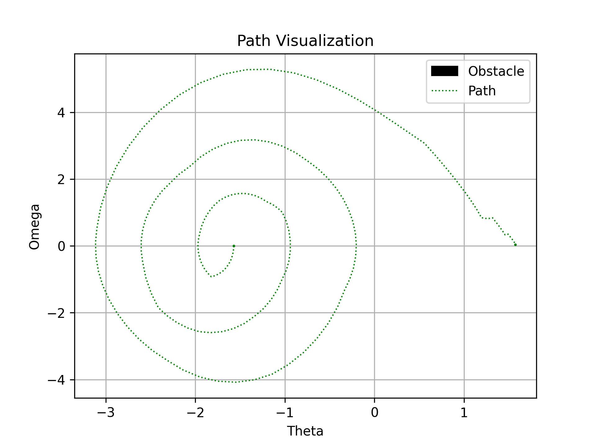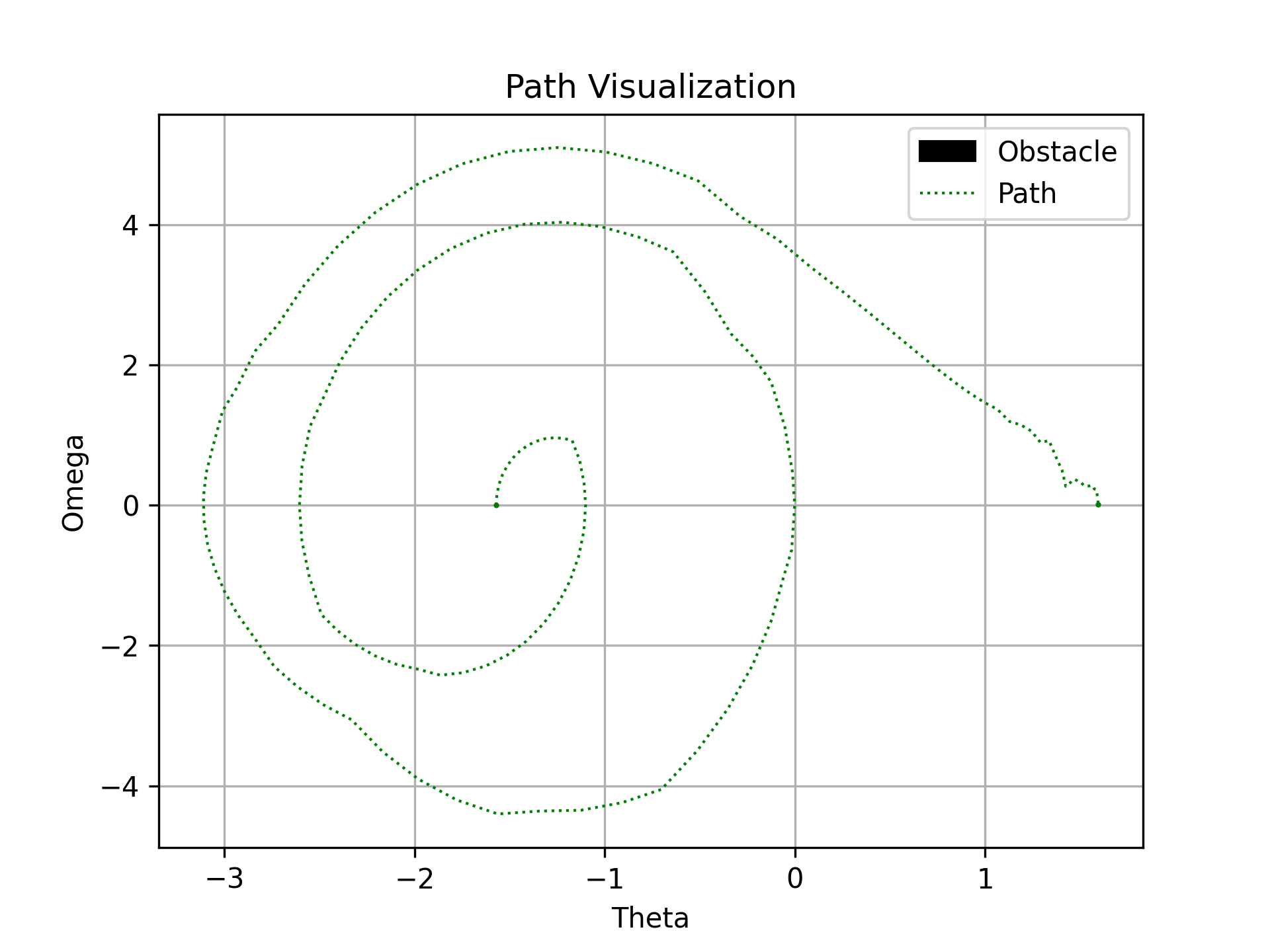 Pendulum Path planners. Left image shows KPIECE planner, middle image RRT and right image shows RGRRT planner.
